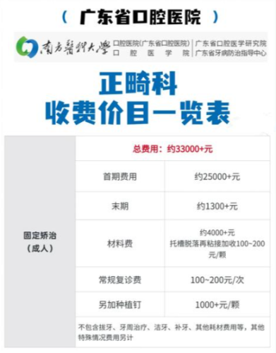 南方医院正畸采用“基础费用+个性化项目”的收费模式,所有项目均按广东省医疗服务价格标准执行,提前公示无套路: