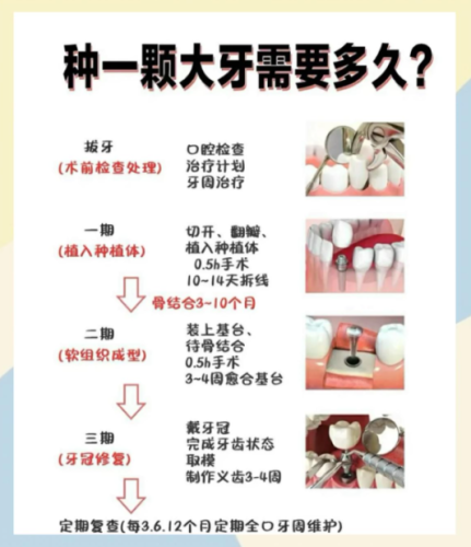 术后恢复(3-6个月):种植体和牙槽骨需要3-6个月的骨结合时间,这段时间可以戴临时假牙,不影响正常生活和咀嚼。