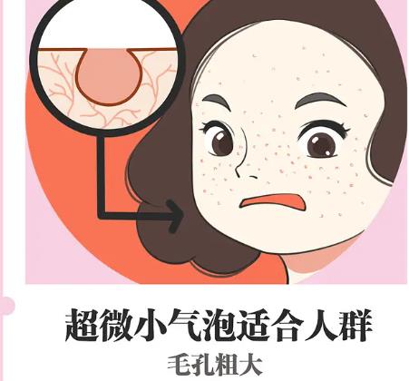 韩式小气泡是通过真空负压形成真空回路,将超细气泡与营养液充分结合,通过特殊设计的小螺旋吸头直接作用于皮肤,可以使气泡与皮肤保持接触长时间使用,从而促进去角质。韩式气泡结合吸附,能深层清洁面部,在安全的状态下去除老化角质和皮脂,彻底清除毛囊漏斗内的各种杂质、螨虫和油脂残留物,使毛囊漏斗充满营养。