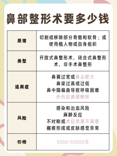 家人们谁懂啊!在这个“颜值即正义”的时代,鼻子简直就是咱脸上的“C位顶流”!高挺鼻梁+精致鼻尖,妥妥的颜值加分神器,分分钟让你在人群里美出新高度!也难怪越来越多人疯狂心动,想冲一波鼻部整形手术~But!做手术前,大家肯定疯狂挠头——这玩意儿到底得花多少钱啊?别慌!今天就给宝子们扒一扒其中门道!