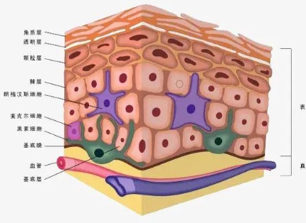 基底层细胞分裂:基底层细胞是皮肤底层的细胞,它们会不断分裂出新的细胞。这些新生成的细胞会逐渐向表皮上层移动。