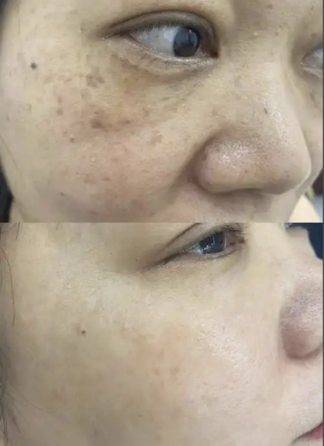 效果:色素沉着面积缩小80%,皮肤亮度提升3个色号。