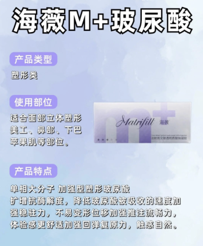 海薇M玻尿酸是一款性能优良的医美产品。它有多种分子类型,不同分子类型对应不同的功效。大分子海薇M+玻尿酸,犹如建筑中的钢筋,支撑力强,常用于隆鼻、隆下巴、下颌缘塑形等需要较强骨性支撑的部位,能让面部轮廓更加立体有型,维持时间可达12-18个月。中分子海薇M玻尿酸则像柔软的填充物,适用于改善面部中度皱纹,如额纹、鱼尾纹、川字纹等,也可填充太阳穴、额头、面颊等凹陷部位,使肌肤恢复平滑,让面部更加饱满立体,填充效果自然,维持时间在6-8个月。小分子海薇玻尿酸,恰似肌肤的保湿精灵,常用于水光注射、唇部注射、卧蚕塑造等,能改善肌肤干燥、缺水等问题,使肌肤保持水润,提升肌肤的光泽度和弹性,维持时间相对较短,为5-6个月。